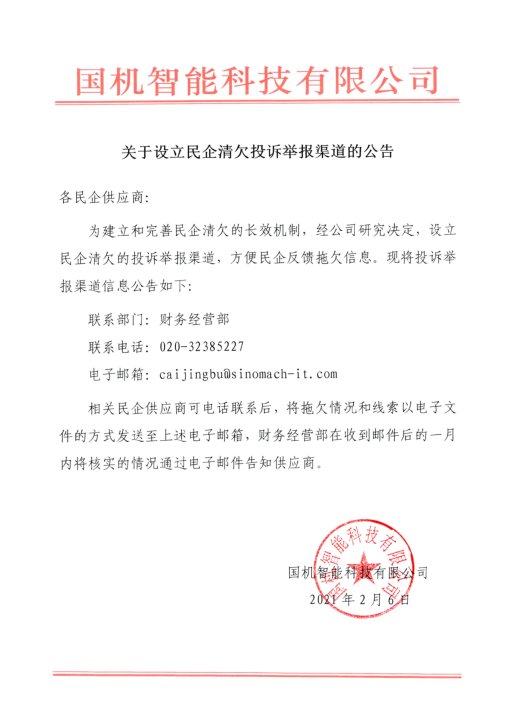關(guān)于設(shè)立民企清欠投訴舉報(bào)渠道的公告
